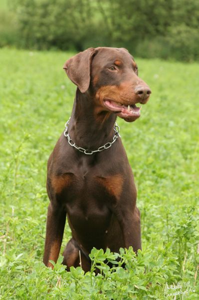 dobrman hnědý s pálením, chovný pes