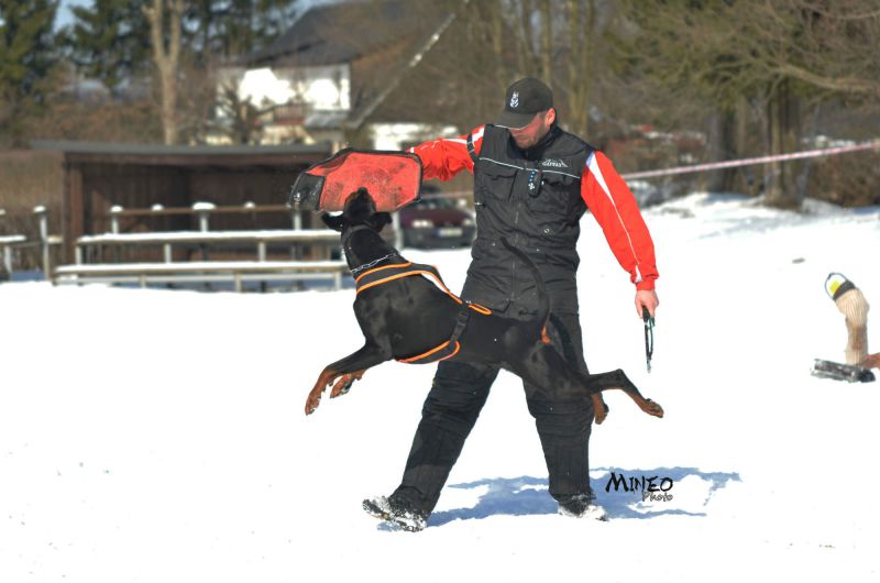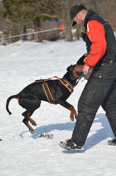 Aktuální fotografie ze cvičení obran Daie, Dark Diamond di Brittasgang (Charm Antis & Ch. Corleona Lady di Brittasgang) & jeho paničky Míši najdete v článku.