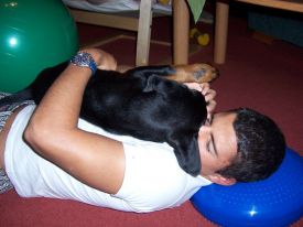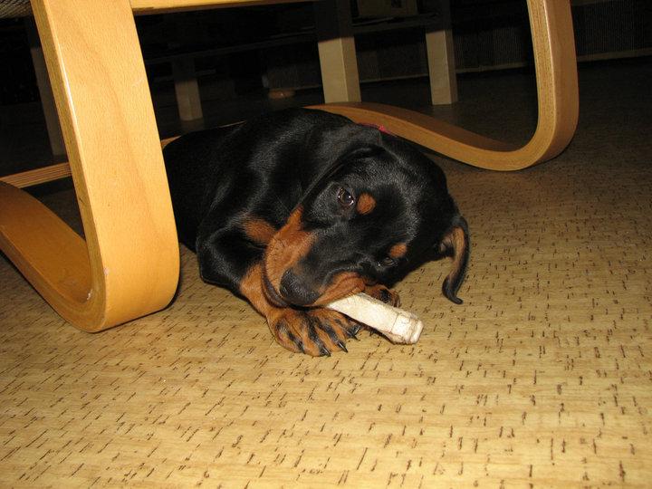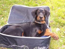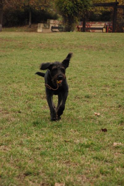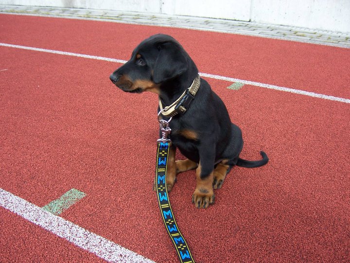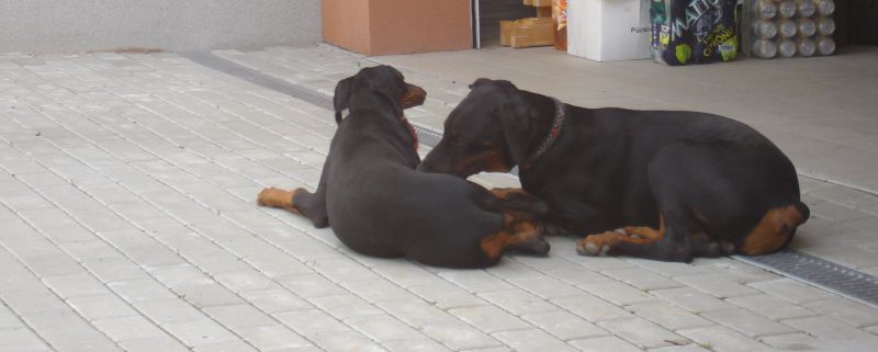 A pro změnu :o))) vkládáme další zprávičky a fotečky Růženčinýho synka, ocasatého Daie (Dark Diamond di Brittasgang). S radostí čtu veškeré zprávy a novinky, které dostávám od Míši. Podle nich, mě Dai vůbec nezklamal, temperamentem jen hýří a dělá nám velkou radost. Již zvládá sedni, lehni, fuj a stůj. Na jedničku s hvězdičkou zvládá i čistotu. Miluje přetahování a procházky po lese, které si plně vychutnává. Doma má již mezi místními kočičáky svého spojence a to nejmladšího kočičáka Umbra. Oba se navzájem provokují a užívají si to. Umbro mu stále obsazuje pelech, Dája poskakuje okolo a Umbro provokativně leží a občas po něm hrábne packou. A nejoblíbenější část Dajíkova těla je pro Umbra ocásek :o)))