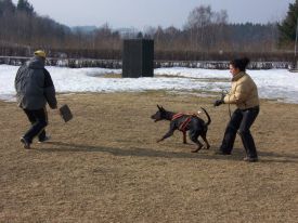 Do článku jsme vložili fotografie Dajdy (Dark Diamond di Brittasgang) z jeho nácviku obrany, kterou si maximálně užívá a je velmi spokojený. Přidáváme i několik foteček z procházky s jeho psími kamarády a pár odpočinkových poloh.