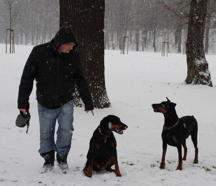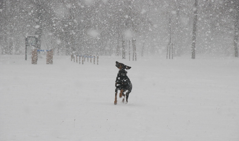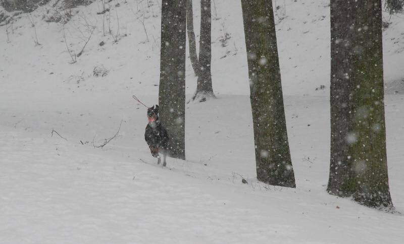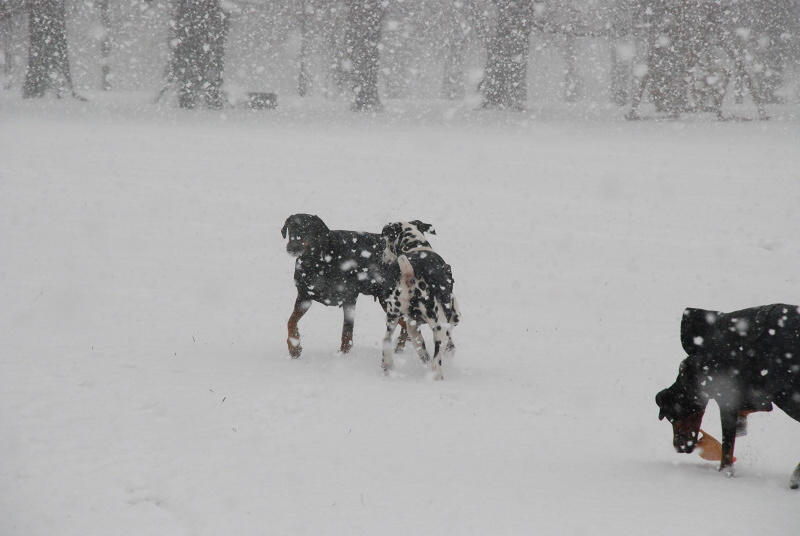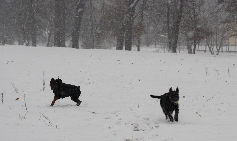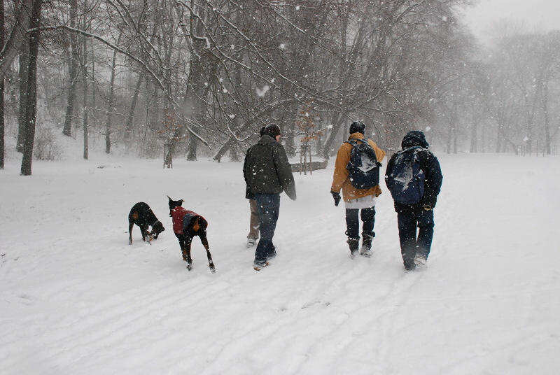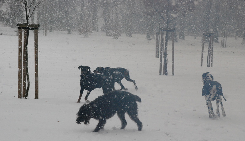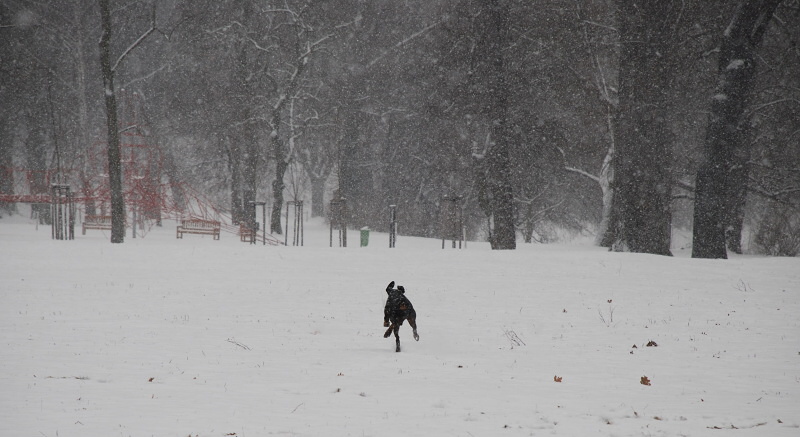 Nadcházející mrazivé ráno nás ohromilo novou několikacentimetrovou sněhovou nadílkou a denními teplotami, které pozvolna klesly na bod mrazu. Nepostihla nás sice kalamita jako v jiných jižních zemích, ale hustě sněžilo a nepřestalo, ani když jsme dorazili do Stromovky, kde na nás již všichni účastnici čekali. Jak jsem se již zmínila, dorazilo nás nemnoho, celkem 6 lidí a 8 psů, což takový menší počet u našich srazíků rozhodně není zvykem.