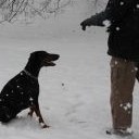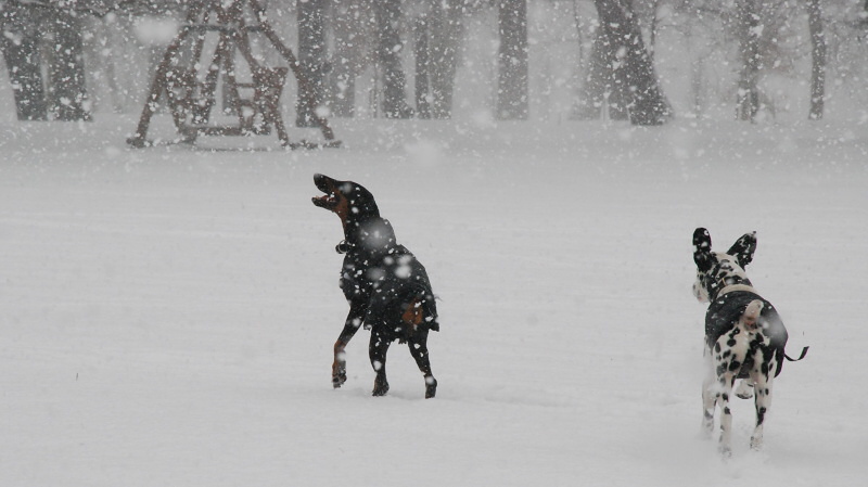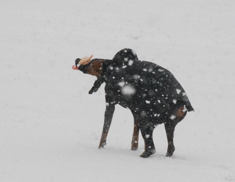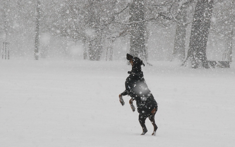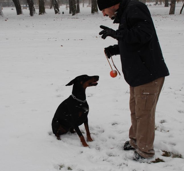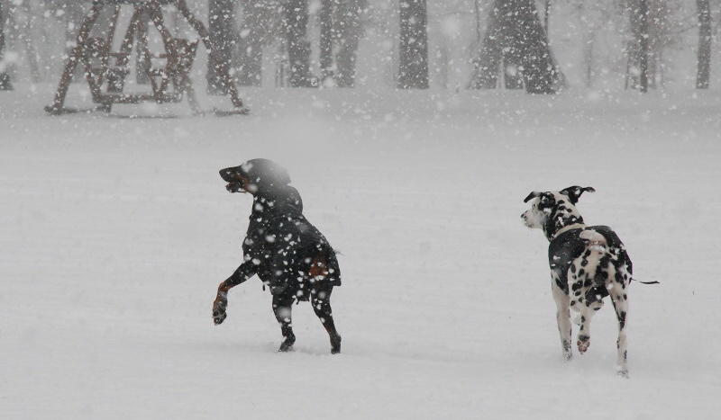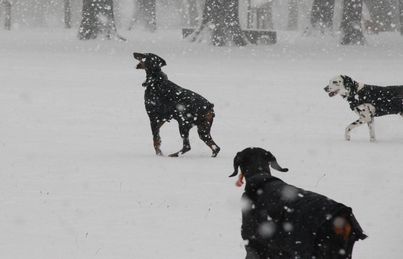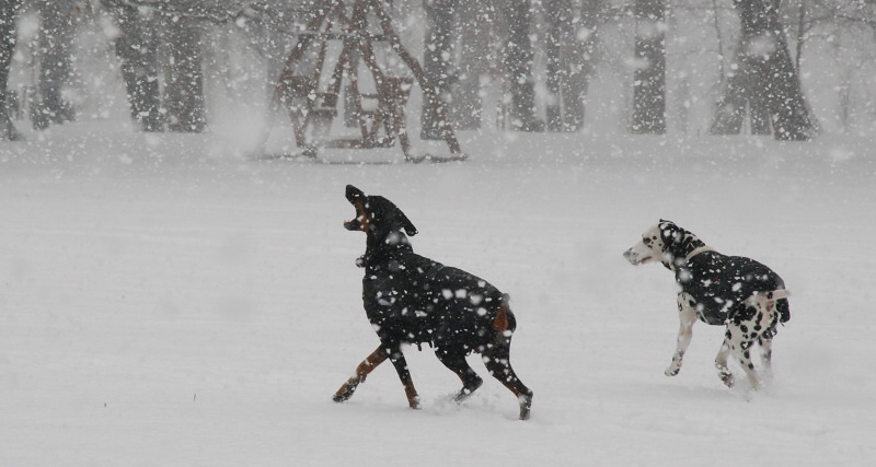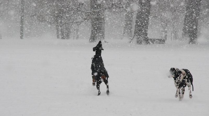 Nadcházející mrazivé ráno nás ohromilo novou několikacentimetrovou sněhovou nadílkou a denními teplotami, které pozvolna klesly na bod mrazu. Nepostihla nás sice kalamita jako v jiných jižních zemích, ale hustě sněžilo a nepřestalo, ani když jsme dorazili do Stromovky, kde na nás již všichni účastnici čekali. Jak jsem se již zmínila, dorazilo nás nemnoho, celkem 6 lidí a 8 psů, což takový menší počet u našich srazíků rozhodně není zvykem.