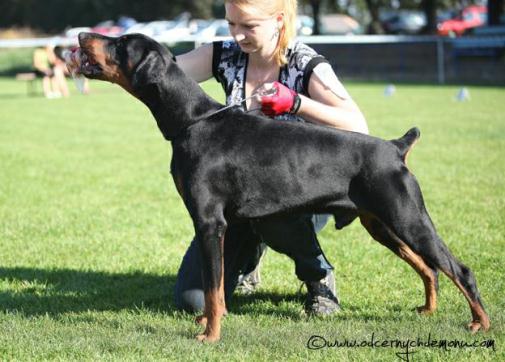 Do třídy mladých psy, kde byli 4 dobrmánci, nastoupili naši dva čekatelé Junioršampiona: