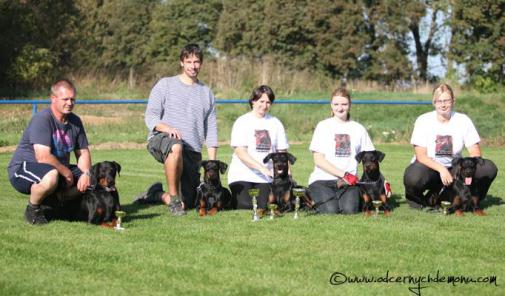 Šlo o tradiční soutěž skupin, ve které není žádné věkové omezení a tak u nás není výjimkou, že se ve skupině objeví např. zástupce z vrhu C a vrhu D, mezi nimiž je věková odlišnost až 3 roky. I přes tento věkový rozdíl pan rozhodčí vyzdvihl naši sladěnou homogenní skupinu & jednotnost v typu a my jsme si tak odnesli první místo: