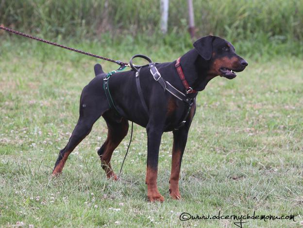 roční černá fena, dobrá výška i délka, lehčí kostra, fenčí hlava, tmavé oko, plnochrupá, dobře nasazený krk, hřbet pevný lehce delší, dobrá spodní linie, volnější předloktí, chody prostorné