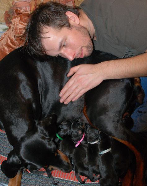 Všem strašně moc děkuju za úžasnou podporu, za krásné a starostlivé vzkazy, mám radost, že máme tolik kamarádů. Můj speciální dík patří mému manželovi, který již jako zkušený porodník Éčka odrodil :o))) a také mojí mamince, která nám pomáhá starat se o naše psí miminka, když už jsme všichni totálně vyčerpaní. Bohužel to jediné, co mi nyní překáží, je fakt, že člověk musí alespoň pár hodin spát :o)))