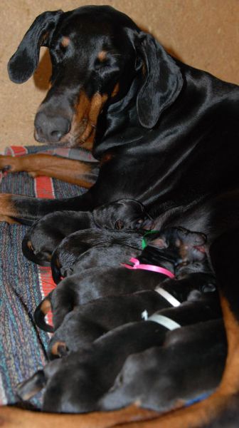 Naší Božence se narodilo celkem 9 úžasných štěňátek dobrmanů: