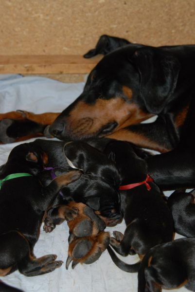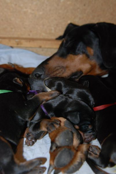 Naší Božence se narodilo celkem 9 úžasných štěňátek dobrmanů: