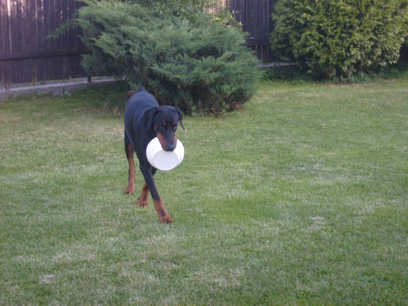 Dnes bylo opět nádherně a pro změnu jsem vzala štěňátkům na zahradu "mňamkovou" novinu: kuřecí skelety. Myslela jsem si, na jak dlouho jim vydrží, ale slupli ho téměř jako malinu.