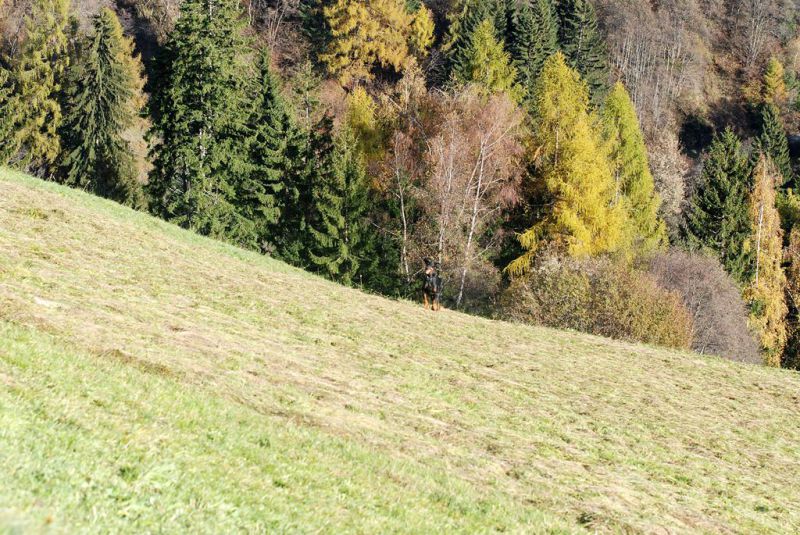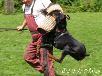 Eso, pejsek s červenou mašličkou, je pořádné číslo a narodil se jako první v pořadí v tomto vrhu. Má výrazný kořistnický pud, již nyní pevné zákusy a příjemný temperament. Přes tyto jeho nesporné vlohy k výcviku ovšem zůstává stále velmi vyrovnaným a kontaktním pejskem bez nežádoucích nervů.