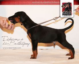 Esperanzo, pejsek s růžovou mašličkou, je bezesporu nejroztomilejším štěňátkem z vrhu. Pokud by to bylo v našich možnostech, byl by to právě on, který by zůstal v naší chovatelské stanici. Pro jeho kouzelný pohled byste mu dali všechno. Je to veliký mazel s krásně modelovanou hlavou, výrazným stopem a dobrou stavbou těla. I on, stejně jako ostatní štěňátka z vrhu, je majitelem báječné povahy. Jeví se jako naprosto bezproblémový jedinec a bude z něho zajisté výtečný aktivní společník.