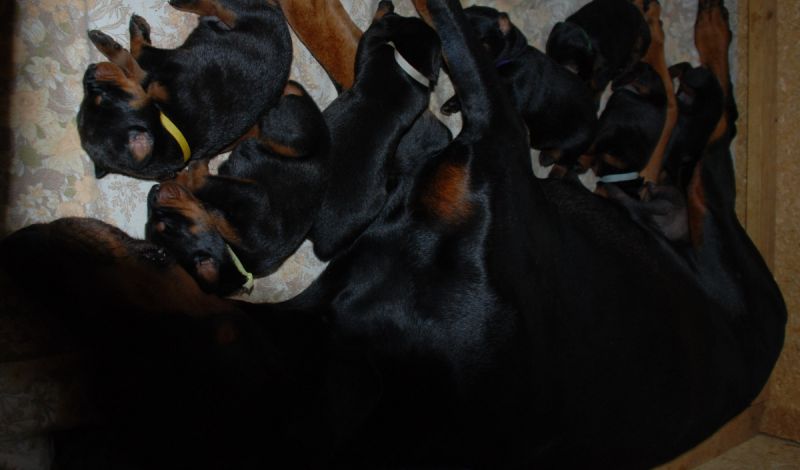 Naší Božence se narodilo celkem 9 úžasných štěňátek dobrmanů: