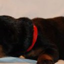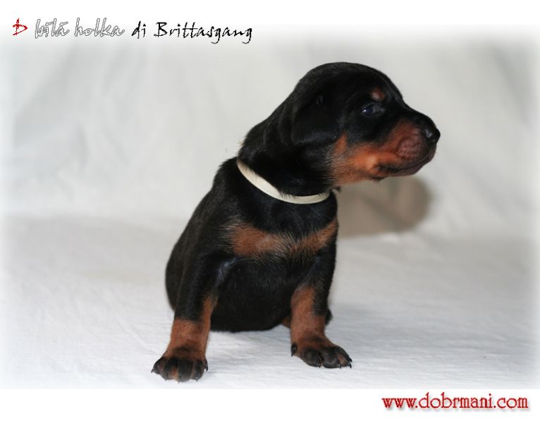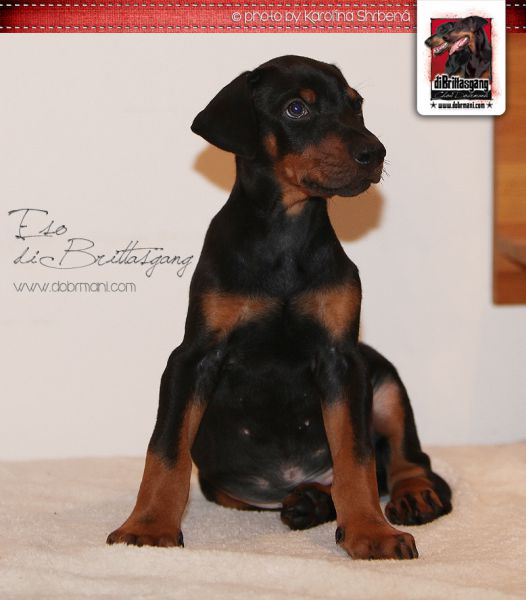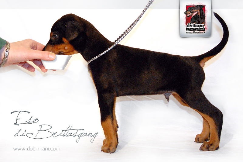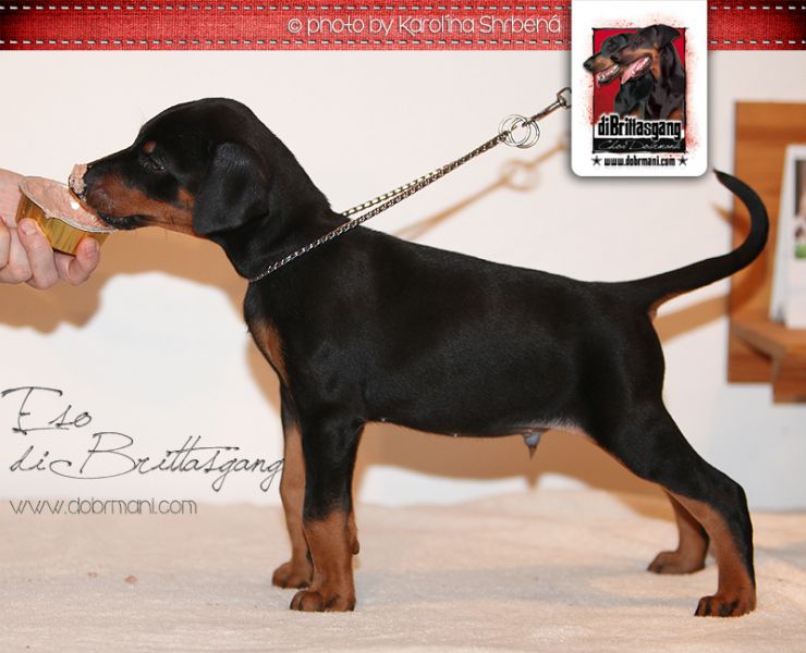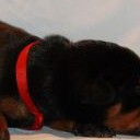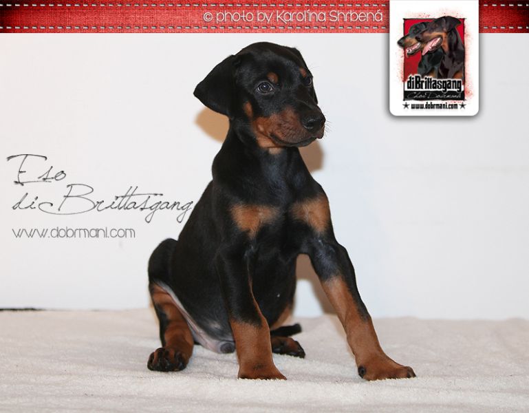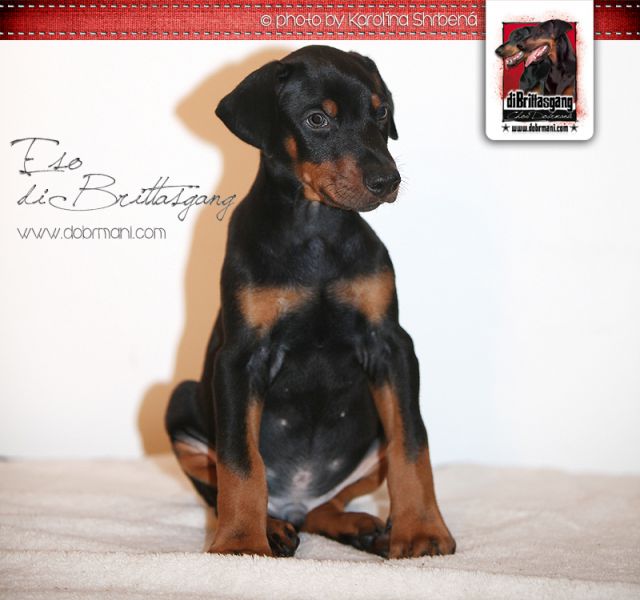 Eso, pejsek s červenou mašličkou, je pořádné číslo a narodil se jako první v pořadí v tomto vrhu. Má výrazný kořistnický pud, již nyní pevné zákusy a příjemný temperament. Přes tyto jeho nesporné vlohy k výcviku ovšem zůstává stále velmi vyrovnaným a kontaktním pejskem bez nežádoucích nervů.
