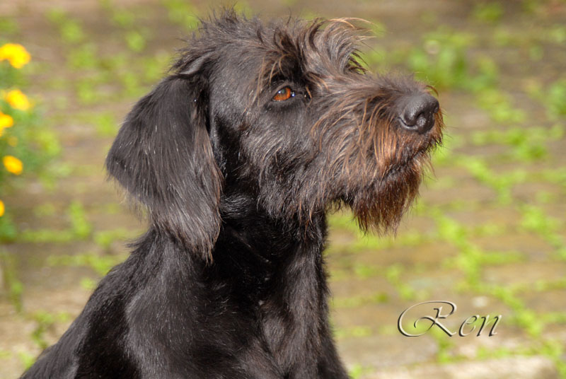Její povaha je harmonická a ušlechtilá. Její tělesná stavba zaručuje sílu, vytrvalost, rychlost a mrštnost (zatím se nám nestalo, že by jí nějaký pes dohnal). K ostatním pejskům je přátelská, ke štěňátkům výchovná. V lidské smečce je velmi oblíbená, kterou si především získá žádostivým pohledem za účelem neustálého aportování balónku. Na čumáčku má kníry a fousky na bradě. Nejvíce miluje procházky v lese.
