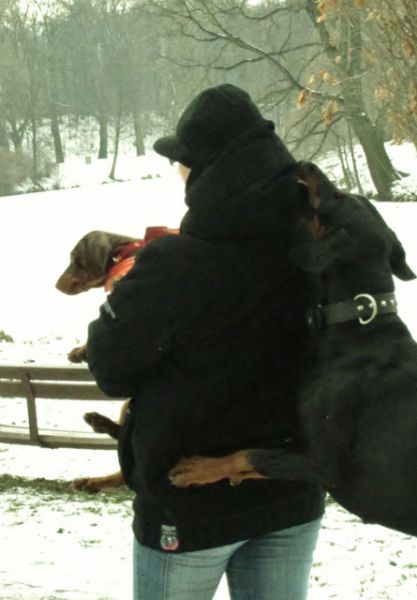 Silvestra jsme, mimo jiného, oslavili parádní procházkou s našimi přáteli, Jazzym (otcem vrhu D) a kamarádkou Míšou (Ordem e Progresso).