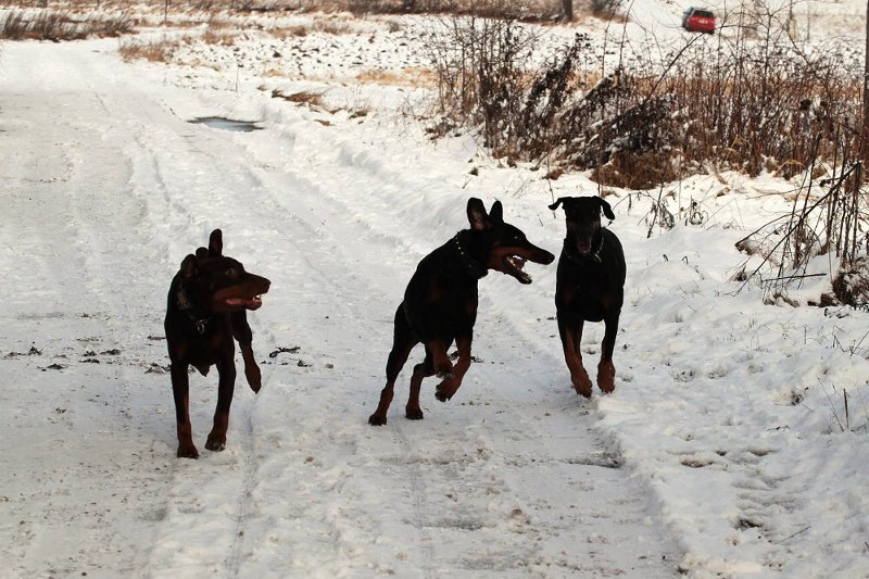 Silvestra jsme, mimo jiného, oslavili parádní procházkou s našimi přáteli, Jazzym (otcem vrhu D) a kamarádkou Míšou (Ordem e Progresso).