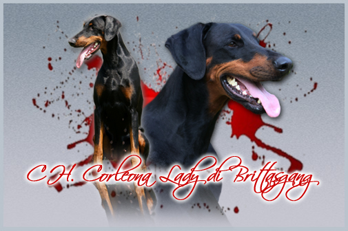 Corleona Lady, námi zvaná Růženka, je sladká dcera špičkové Brittanici a excelentního holandského plemeníka Spike Les Deux Peupliers. Pochází z povahově i exteriérově vyrovnaného vrhu C naší chovatelské stanice di Brittasgang, kde se narodilo celkem 10 dobrmánků, z toho 8 feneček a 2 pejsci. Již před jejím narozením jsme byli pevně rozhodnuti, že si chceme nechat z tohoto výjimečného spojení fenku, coby pokračovatelku krevní linie po naší Brittanice. Zřejmě, aby volba naší další fenečky nebyla tak snadná, narodilo se zmiňovaných 8 fenek, což jak uznáte, vskutku nebyl lehký výběr. K naší bezbřehé radosti Corleona Lady vzala vše do svých psích tlapek a vybrala si ona nás. Jako první vylezla z porodní bedny, přelezla Brittušku a odbatolila se přímo k paničce. Od té doby se ode nás Corleona Lady již nehnula a přivlastňovala si nás před ostatními sourozenci.