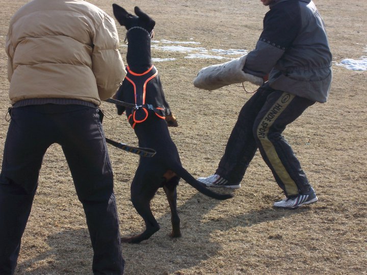 Sebevědomý, sportovní pes, oddaný a žije ve společné domácnosti s druhým dobrmanem a také s hendikepovaným synem majitele.