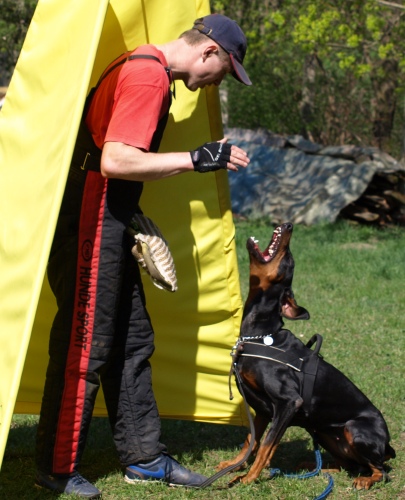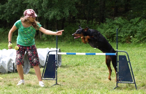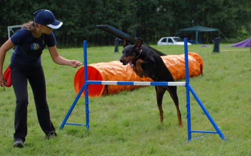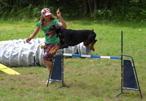 Několik názorně dokazujících fotografií, jak se dá s dobrmanem dělat agility: